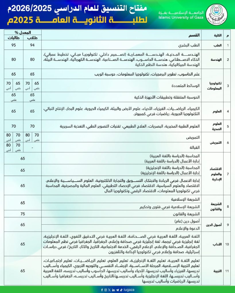 الإعلان عن مفتاح التنسيق للعام الدراسي 2025/2026م